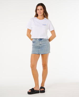 Hayley O Crop Tee u OPTICAL WHITE kombinuje udobnost, stil i moderan surf duh, što ga čini odličnim izborom za surfovanje, plažu ili svakodnevnu upotrebu. Napravljen od mekog pamuka sa cropped krojem, pruža opušten fit sa ženstvenim šarmom za aktivne dane.